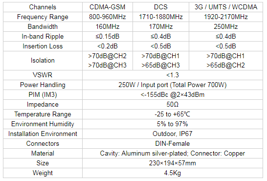 Product Details ofDIN-kvenkyns Triple Band Triplexer Combiner RF GSM&DCS&WCDMA